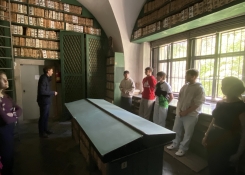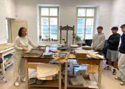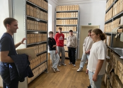 Ve dnech 12. a 30. září 2025 se žáci dějepisného semináře zúčastnili již tradiční exkurze do Státního oblastního archivu v Třeboni. Pod vedením místních zaměstnanců si prohlédli konzervátorskou a knihařskou dílnu, kde měli možnost se seznámili s technikami a postupy používanými k restaurování a uchovávání archiválií. Další den proběhla prohlídka archivních depozitářů, kde se dozvěděli řadu informací o náplni práce archiváře a seznámili se s řadou zajímavých historických pramenů. Tato exkurze byla přínosná i v tom smyslu, že žákům ukázala, že třeboňských archiv nabízí širokou škálu možností pro ty, kteří by se rozhodli zde vykonávat své budoucí povolání.