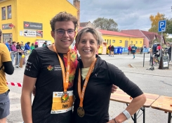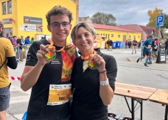 Atraktivní certifikovaná trať v přírodě Třeboňska nalákala v sobotu 11. října 2025 stovky nadšených běžců, kteří si chtěli poměřit své síly na třech tratích – klasické maratonské (42,195 km), půlmaratonské (21,0975 km), deseti a pětikilometrové. Mezi závodníky i organizátory byli – již tradičně – díky naší tělocvikářce a zkušené běžkyni Petře Augstenové také žáci našeho gymnázia. Petra opět zářila jako jeden z výrazných "tempomakerů", letos přijala roli vodičky na půlmaratonské trati na čas 1:50 hod., i když sama umí tuto trasu zvládnout výrazně rychleji. Její přístup je inspirací pro mnohé – nejen výkonem, ale i ochotou podpořit, vést i hecovat ostatní běžce.