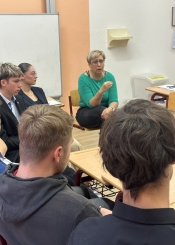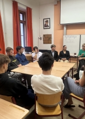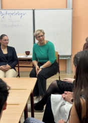 Paní Majerová hovořila nejen o náročnosti práce v psychiatrii, ale také o tom, jak vypadá každodenní kontakt s pacienty trpícími různými duševními poruchami. Zvláštní pozornost věnovala psychotickým onemocněním, zejména těm, která mohou být vyvolána intoxikací návykovými látkami. Otevřeně mluvila o rizicích experimentování s drogami a alkoholem a přinesla tak studentům důležité preventivní poselství. Přednáška zaujala především svou autentičností a propojením teorie s praxí. Studenti měli možnost klást otázky a nahlédnout do prostředí psychiatrického oddělení očima člověka, který se denně setkává s pacienty v akutních stavech. Děkujeme paní Pavle Majerové za otevřený a upřímný pohled na problematiku duševního zdraví i za to, že studentům pomohla lépe porozumět, jak k psychickým onemocněním přistupovat s respektem a empatií. Tento projekt byl podpořen Fotosem.