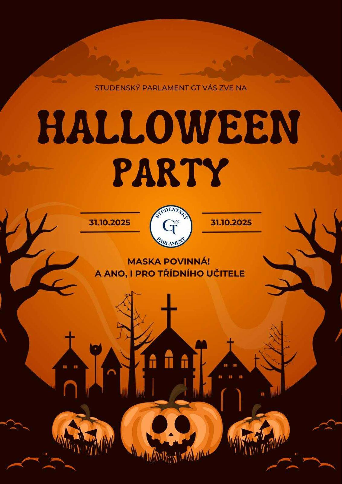 Studentský parlament Gymnázia Třeboň pořádá Halloween Day v pátek 31. října 2025 a vy můžete pro svou třídu sbírat cenné body do Školního poháru. Nejde jen o jeden kostým – čím víc studentů z vaší třídy se zapojí, tím více bodů celá třída získá. A nezapomeňte ani na svého třídního učitele – jeho účast se také počítá do celkového skóre!