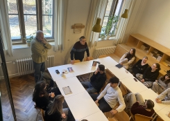 Jiří Šesták je pravidelným hostem našeho gymnázia. Ve středu 12. listopadu zavítal v rámci literární besedy mezi studenty 4. ročníku, aby je seznámil se svým novým románem Kristus jde na sever. První hodina byla věnována obsahové stránce díla. Jiří Šesták studentům poutavě přiblížil pozoruhodný příběh a osud markomanské královny Fritigil a její cestu do Milána z důvodu přijetí křesťanství. Autor uvedl pozadí vzniku díla a samotný proces psaní, pohovořil o místech, která v souvislosti s historickými událostmi románu sám navštívil a zmínil  i životy významných osobností té doby, jakou byl například biskup Ambrosius. V průběhu druhé hodiny Jiří Šesták odpovídal na dotazy studentů týkající se nejen samotné knihy, ale i další literární, divadelní a politické činnosti. Beseda byla zakončena autorským čtením jedné z klíčových kapitol knihy. Studenti si tak mohli uvědomit propojenost příběhu s téměř neznámou kapitolou našich dějin a šířením počátků křesťanství na českém území.