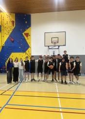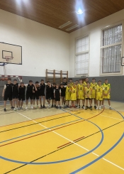 Zápas měl od začátku skvělou atmosféru a oba týmy předvedly velmi vyrovnané výkony. O napětí nebyla nouze až do posledních sekund – utkání nakonec skončilo těsným výsledkem 44 : 43 pro Gymnázium Třeboň, a naše družstvo si tak připsalo vítězství na tomto přátelském turnaji. Celé odpoledne se neslo v duchu fair play, vzájemného respektu a radosti ze hry. Velké poděkování patří také zapisovatelkám z 2. ročníku: Natálce Boubelíkové a Aničce Maňourové, které se postaraly o časomíru i zápis utkání, a panu Tomáši Petrů, který zápas skvěle odpískal. Děkujeme všem hráčům, organizátorům i fanouškům za příjemné sportovní odpoledne. Těšíme se na další setkání na hřišti!