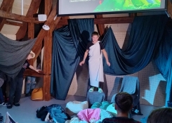 Na jevišti se postupně objevily příběhy z Čech, Řecka, Říma, Egypta, severských a keltských mýtů, ale také z Japonska a Faerských ostrovů. Cílem projektu nebylo jen poznat tyto příběhy, ale hlavně vyzkoušet si dramatický proces od začátku do konce – od práce s textem, tvoření divadleních obrazů přes tvorbu scénářů, kostýmů a nasvícení až po samotné vystoupení. Nechyběla ani improvizace, protože někteří herci byli v den představení nemocní, ale prima to zvládla skvěle! Sekunda se stala pozorným publikem, které po představení navíc pracovalo s připravenými pracovními listy a sdílelo své zážitky ze sledování.