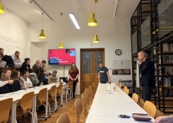 V úterý 20. 1. 2026 proběhla ve školní knihovně inspirativní beseda se spisovatelem a vydavatelem Martinem Reinerem. Setkání nabídlo studentům jedinečnou příležitost poznat současnou literární tvorbu přímo od autora, který se dlouhodobě věnuje nejen vlastní práci, ale také editorství a vydavatelské činnosti.
