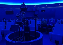 Poté třída 1.4 navštívila planetárium, které je součástí hvězdárny. Zde se zúčastnila hodinové přednášky, při které pozorovala projekci noční oblohy. Celá přednáška byla uzpůsobena tak, aby ji všichni snadno pochopili a každý si odnesl nějaké nové informace o tom, v jakém vesmíru žijeme. Leckdy nám ani nedojde, jak malincí vlastně v tom nekonečném prostoru jsme.