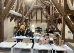 V pátek 27. března 2026 se v přednáškovém sále konal další dějepisný seminář, v jehož rámci se žáci seznámili s dalším úhlem pohledu, jakým lze zkoumat problematiku šoa za 2. světové války. Při realizaci semináře spojili své síly hned tři pedagogové. Tomáš Mařík seznámil žáky s nově objeveným deníkem jednoho z přeživších vyhlazovacího tábora Auschwitz, stejně jako s historií tábora v konceptu šoa. Václav Pražák zasadil deník do širšího kontextu historických pramenů a poukázal na možná úskalí při jeho interpretaci. A konečně Tereza Maříková přidala řadu podnětných postřehů k psychologickým aspektům deníkových záznamů a jejich reflexe skutečnosti. Určitě nejsilnějším zážitkem byla práce s ukázkami, z nichž se žáci dozvěděli řadu nových informací, včetně specifického slovníku vězňů. Díky tomu mohli nahlédnout do bezprostředního svědectví této historické epochy.