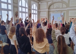 Nejdříve jsme měli přednášku s fyzioterapeutem Markem Zemanem, trochu jsme i cvičili a zpívali. Potom jsme navštívili kozu Rózu a prošli se parkem u Aurory, vylezli jsme nebo se nechali vyvést výtahem na vyhlídku.