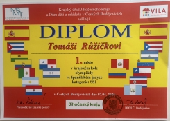 V úterý 7. dubna se konala v Domě dětí a mládeže  v Hardtmuthově vile v Českých Budějovicích krajská konverzační soutěž ve španělštině. V konkurenci gymnázií z Jihočeského kraje získal Tomáš Růžička ze 3.ročníku   v kategorii SŠ/1  1. místo. Tomovi gratulujeme k velkému úspěchu a přejemu mu hodně nadšení a odvahy do ústředního kola, které se bude konat v Instituto Cervantes v Praze. V katergorii SŠ/1 soutěžila také Eva Němcová ze 3. ročníku, v kategorii SŠ/2 Veronika Huličková ze sexty a Max Šarman ze septimy.