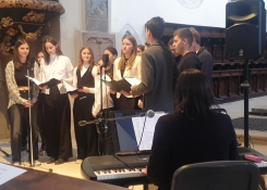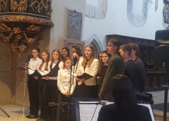 Školní sbor Gymnázia Třeboň má za sebou další benefiční vystoupení. Tentokrát jsme zpívali na benefičním koncertě, jehož výtěžek (téměř 10 000Kč) byl věnován pořadateli akce - organizaci Fokus Tábor, která poskytuje podporu lidem s vážný duševním onemocněním. Koncert se uskutečnil 18.4.2026 v Kostele sv. Jana křtitele v Jindřichově Hradci. Společně s námi vystoupil sbor Gymnázia Jindřichův Hradec Zanoty a také několik sólistů. Jsme moc rádi, že jsme byli přizvání k realizaci akce a mohli se podílet na dobré věci. Těšíme se zase příští rok.