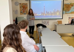 V úterý 21. dubna k nám do školy zavítala slečna Sarah Gauthier, stážistka z Kanady. Během milého setkání se studenti sexty a 3. ročníku dozvěděli něco o Sarah a její cestě z Québecu do České republiky, vyprávěla nám o své rodné zemi a kanadských zvycích. Její povídání bylo velmi příjemné a studenti museli zapojit hned několik jazyků najednou. Sarah mluvila zejména francouzsky, ale občas něco dovysvětlovala i v angličtině, takže to byla pro některé posluchače výzva. Tímto děkujeme Sarah za návštěvu a přejeme jí šťastný návrat domů.