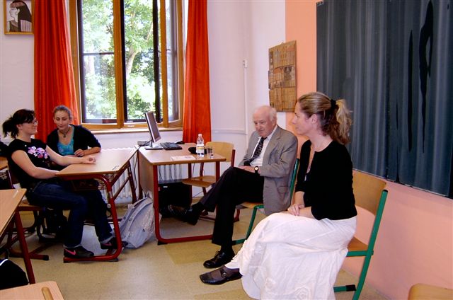 Tom Schrecker na jedné z prvních návštěv našeho gymnázia (2011), na dalších fotografiích při slavnostním zahájení školního roku (2012), nebo při sledování (a komentování) budování areálu PC v roce 2017
